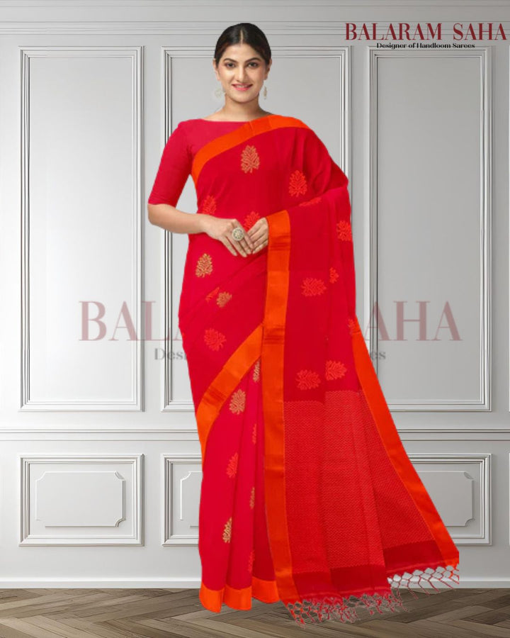 Bright Red & Orange Soft Handloom Premium Cotton Saree