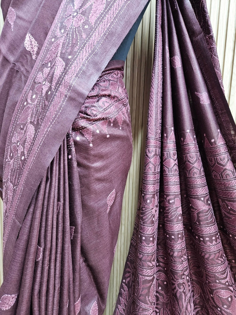 Discover the Timeless Elegance of this exquisite Tussar Kantha Silk Saree